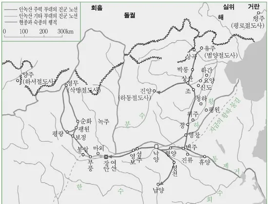 안녹산의 난 당시 안녹산의 군이 장안에 미치자 황제는 사천으로 피난을 떠났고, 반란군의 강요로 양귀비를 처형했다. 난이 겨우 평정되고 난 후 당 왕조는 힘을 잃게되고 실질적인 독립 소왕국이며 절도사가 지휘하는 번진의 할거 국면을 용인할 수 밖에 없었다. 당 외적으로는 위구르 등 중앙아시아 유목세력이 당의 영향력에서 벗어나 통일제국을 세웠다. 당은 흉노 등 유목세력을 견제하며 중앙아시아 서역지배 경쟁을 벌이고 있었는데, 안녹산의 난 이후 위구르 제국은 토번과 서역을 아우르며 중앙아시아의 새로운 지배자로 나타났다.