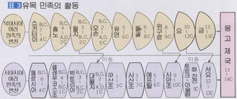 선비족의 뒤를 이어 고비사막 북쪽의 초원을 다스렸던 민족은 유연족이다. 유연은 기원후 4세기 후반부터 6세기 중반까지 초원에 국가를 건국하여 활동하였다. 3세기 전반에 선비족 연합체가 붕괴되고 우문부, 탁발부 같은 일부 선비 부족이 북중국으로 이주하였다. 비어버린 초원을 '칙륵'이라는 투르크 계통의 유목민족이 이들이 빠져나간 자리를 채웠다.