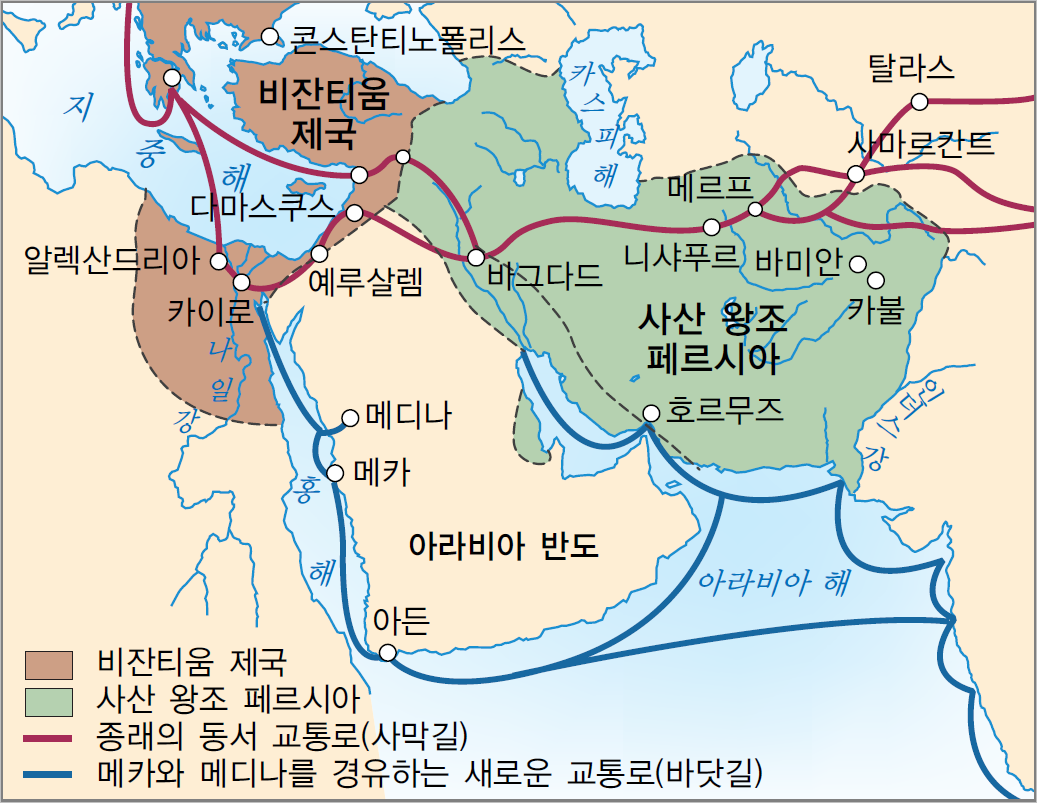 사산왕조 페르시아와 돌궐은 초원길을 통한 비단무역을 두고 대립하였다. 돌궐제국은 사산왕조가 영유하고 있던 국제 교역로를 우회해서 이들이 가지고 있던 영향력을 빼앗고자 했다. 그리하여 교역로를 두고 돌궐은 페르시아를 거치지 않고 비단을 교역할 길을 찾기위해 노력하였다. 이때 돌궐의 눈에 들어온 나라가 바로 동로마제국, 비잔티움이었다. 비잔티움은 당시 사산왕조 페르시아와 군사적으로 대립하고 있었기에 돌궐에게는 더욱 안성맞춤인 상대였다. 적의 적은 동맹이었다. 비잔티움은 532년 페르시아의 군사적 공격에 의해 지중해의 안티오크를 점령당한 적도 있었기에 비잔티움에게도 사산왕조의 후방을 견제해 줄 수 있는 돌궐이 중요한 파트너로 인식되었다.