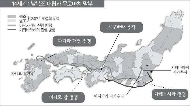 1338년 아시카가가 정이대장군에 취임하면서 무로마치막부가 열리고,